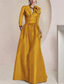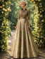 A-linje Svepsläp Bröllopsgästklänning Formell klädsel Aftonklänning Klänning till brudens mor Långärmad Prydd med juveler Elegant Silkig Jul Formell Satäng med Applikationsbroderi