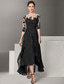 A-linje Asymmetrisk Festklänning Cocktail klänning Bröllopsgästklänning Klänning till brudens mor Ärmlös Prydd med juveler Elegant Kort och lång Bröllopsgäst Bröllopsfest Svart slips Satäng med