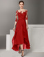 A-linje Asymmetrisk Telång Festklänning Cocktail klänning Bröllopsgästklänning Klänning till brudens mor Halvlång ärm Prydd med juveler Elegant Plusstorlek Kort och lång Bröllopsgäst Bröllopsfest