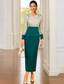 Åtsmitande Knälång Festklänning Cocktail klänning Bröllopsgästklänning Klänning till brudens mor 3/4 ärm Prydd med juveler Elegant Bröllopsgäst Charmeuse med Applikationsbroderi