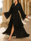 A-Linje Golvlång Bröllopsgästande Klänning Formella Klänningar Lagad Klänning Morgana klänning Lång Ärmar V-Hals Elegant Vintage Fest Kyrka Chiffong med Fallande Volanger