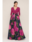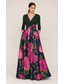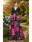 A-linje Golvlång Bröllopsgästklänning Formell klädsel Konståkningsinspirerad klänning Kvälls klänningar Elegant Silkig 3/4 ärm V-hals Bröllop Formell Ficka Satäng Stretch crepe med Blomtryck