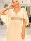 A-Linjeklänning Golvlång Festklänning Bröllopsgästklänning Formella Klänningar Mors Dag Klänning Kortsleeve V-hals Elegant Vintage Chiffon med Fållar