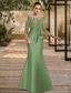 Sjöjungfru trumpet Golvlång Bröllopsgästklänning Formell klädsel Aftonklänning Klänning till brudens mor 3/4 ärm Illusionshalsband Elegant Silkig Jul Formell Satäng med Applikationsbroderi