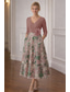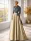 A-linje te-längd bal klänning festklänning cocktail klänning brudens mors klänning kort ärm rund hals elegant vintage fest bröllopsgäst med broderi färgblock