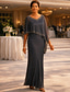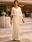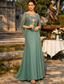 Åtsmitande Golvlång Festklänning Cocktail klänning Bröllopsgästklänning Klänning till brudens mor Kortärmad Halvlång ärm Rund hals Rundhals Elegant Formell Bröllopsgäst Familjesammankomst Chiffong