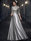 A-linje Klänningar Telång Festklänning Cocktail klänning Bröllopsgästklänning Klänning till brudens mor 3/4 ärm Halsbåt Elegant Vintage Bröllopsgäst Satäng med Bård