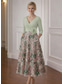 A-linje Ankellång Klänning för brudens mor Blommig broderi klänning Cocktailklänningar Elegant Dagligen Blommig Långärmad V-hals Trädgårdsfest Bröllop Spets med Blomtryck Broderad blomma Broderad