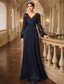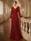 Åtsmitande Golvlång Bröllopsgästklänning Formell klädsel Aftonklänning Klänning till brudens mor Långärmad V-hals Elegant Enkel Bröllopsgäst Chiffong med Spets Kristalldetaljer
