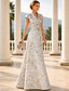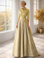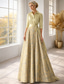 A-linje Golvlång Bröllopsgästklänning Formell klädsel Aftonklänning Klänning till brudens mor Kortärmad Kavajslag Elegant Vintage Bröllop Formell Jacquard med Rosett(er) Ficka