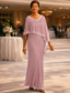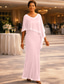 Byxor Golvlång Formell klädsel Klänning till brudens mor 3/4 ärm Båthals Elegant Vintage Formell Bröllopsgäst Kyrka Chiffong med Broderad