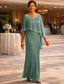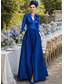 A-linje Sjöjungfru trumpet Åtsmitande Golvlång Bröllopsgästklänning Formell klädsel Aftonklänning Klänning till brudens mor 3/4 ärm Halvlång ärm V-hals Prydd med juveler Elegant Vintage party Formell