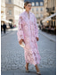 A-linje Golvlång Skjortklänning Bröllopsgästklänning Formell klädsel Klänning till brudens mor Långärmad Tröjkrage Elegant Vintage Bröllop Formell Nylon med Blomtryck Rosett(er) Ficka