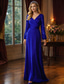 A-linje Golvlång Bröllopsgästklänning Formell klädsel Aftonklänning Klänning till brudens mor Långärmad V-hals Elegant Enkel minimalist Formell Bröllopsgäst Satäng Paljetter med Plisserat