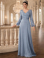 Åtsmitande Golvlång Bröllopsgästklänning Formell klädsel Aftonklänning Klänning till brudens mor Halvlång ärm V-hals Elegant Bröllopsgäst Chiffong med Bård