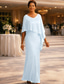 Tvådelad Frack Telång Bröllopsgästklänning Klänning till brudens mor Långärmad V-hals Elegant Vintage cocktail Formell Chiffong med Färgblock