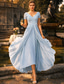 A-linje Ankellång Festklänning Cocktail klänning Bröllopsgästklänning Klänning till brudens mor Halvlång ärm Över axeln Elegant Kort och lång Formell Bröllopsgäst Chiffong Spets med Plisserat