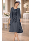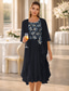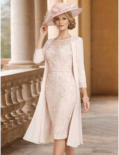 Tvådelad Åtsmitande Knälång Bröllopsgästklänning Klänning till brudens mor 3/4 ärm Halsbåt Elegant Vintage Plusstorlek Bröllopsgäst Kyrka Chiffong Spets Jacka klänningar med Applikationsbroderi