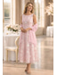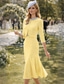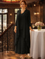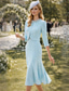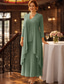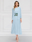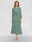 Klänningsset Tealängd Bröllopsgästs Klänning Mor till Bruden Klänning 3/4 Längd Ärmar Fyrkantig Halsringning Elegant Enkel Bröllopsgäst med Enfärgade