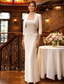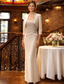 Tvådelad Åtsmitande Telång Bröllopsgästklänning Klänning till brudens mor 3/4 ärm V-hals Elegant Vintage Formell Bröllopsgäst Chiffong Spets Jacka klänningar med Spets Fallande volanger