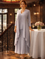 Tvådelad Åtsmitande Knälång Bröllopsgästklänning Klänning till brudens mor 3/4 ärm Prydd med juveler Elegant Formell Bröllopsgäst Kyrka Chiffong Spets Sjal inkluderad Jacka klänningar med Bård