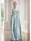 Tvådelad A-linje Golvlång Bröllopsgästklänning Klänning till brudens mor 3/4 ärm V-hals Elegant Glitter och glans Formell Bröllopsfest Satäng Paljetter Sjal inkluderad med Rosett(er)