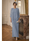 Klänningar Frack Telång Bröllopsgästklänning Klänning till brudens mor 3/4 ärm Prydd med juveler Elegant Vintage Formell Bröllopsgäst Stretchtyg med Spets Pärldetaljer