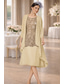 Tvådelad Åtsmitande Knälång Bröllopsgästklänning Klänning till brudens mor Remmar Prydd med juveler Elegant Bröllopsgäst Bröllopsfest Kyrka Satäng Jacka klänningar med Bälte / band Rosett(er) Bård