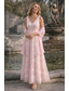 Tvådelad Åtsmitande Ankellång Pärlbroderad Bröllopsgästklänning Formell klädsel Klänning till brudens mor Långärmad V-hals Elegant Glitter och glans Bröllopsgäst Semiformell Chiffong Paljetter med