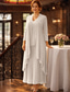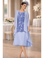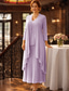 Tvådelad A-linje Knälång Bröllopsgästklänning Klänning till brudens mor Ärmlös Långärmad Rundhals Elegant Enkel Lyxig Formell Bröllopsgäst Chiffong med Fallande volanger