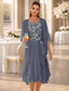 Tvådelad Åtsmitande Knälång Bröllopsgästklänning Klänning till brudens mor 3/4 ärm Prydd med juveler Elegant Bröllopsgäst Kyrka Chiffong Satäng Spets Korta jacka klänningar med Applikationsbroderi