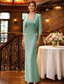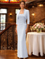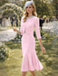 Tvådelad Sjöjungfru trumpet Telång Bröllopsgästklänning Klänning till brudens mor Halvlång ärm Prydd med juveler Elegant Formell Bröllopsgäst Satäng med Knappar