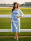 Tvådelad Åtsmitande Frack Knälång Bröllopsgästklänning Klänning till brudens mor 3/4 ärm V-hals Elegant Vintage Bröllopsfest Semiformell Satäng med Fjäder Bård