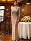 Tvådelad Åtsmitande Klänningar Telång Festklänning Cocktail klänning Bröllopsgästklänning Klänning till brudens mor Långärmad Båthals Elegant Vintage Formell Bröllopsgäst Kentucky Derby Satäng Spets