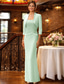 Tvådelad Sjöjungfru trumpet Telång Bröllopsgästklänning Klänning till brudens mor Halvlång ärm Rund hals Elegant Enkel Lyxig Formell Bröllopsgäst Chiffong Satäng med Spets