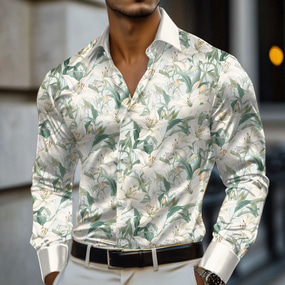 Påsk Herr Blomtryck Lily Blommor Satinskjorta Skjorta Knapp upp skjorta Långärmad Mode Casual Semester Helgdag Sommar Vår Höst Nedvikt Skjortor med krage 3D-utskrift Vit Grön