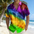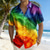 Herr Färgglad Regnbåge Fjädrar Skjorta Satinskjorta Kortärmad Mode Casual Dagligen Utomhus Semester Sommar Vår Nedvikt 3D-utskrift Skjortor med knappar Blå Orange Grön