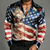 Herr 4 juli USA:s 250-årsjubileum Örn Amerikanska flaggan Skjorta Satinskjorta Knapp upp skjorta Långärmad Patriotisk Utomhus Festival Sommar Vår Nedvikt 3D-utskrift Blå Svart Vinröd