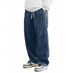 Herr Långbyxor Manchesterbyxor Säckiga byxor Casual byxor Träningsbyxor med raka ben Snörning Elastisk midja Ensfärgat Komfort Fullängd Utomhus Dagligen Streetwear Semester Mode Svart Rodnande Rosa