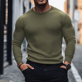 Herr Våffelskjorta T-shirt T-tröja Långärmad tröja Långärmad Rund hals Vår & Höst Mode Designer Grundläggande Varm Semester Ledigt / vardag Grön Topp t-shirt för män