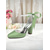 Damskor med armégröna stickade blockklackar och strassrem, snygga och bekväma kontorsskor för lärare, receptionister och vardagskläder