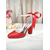 röda och vita pumps med blockklack för kvinnor - festliga högklackade spetsiga tår för julfester och festliga outfits