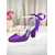 lila satinspetsiga blockklackar för kvinnor, pumps med strass-detaljer för cocktailpartyn och bröllop &kvällsevenemang