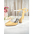 Damskor med guldfärgad metallisk blockklack, spetsig tå och ankelrem, eleganta klänningsskor för bröllopsgäster, trädgårdsbröllop &formella evenemang