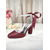 Damskor i vinröda mocka med blockklack och strassspänne – eleganta klänningsskor i retrostil för damer, perfekta för kontor, bröllop och fester