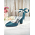 Blå dampumps i satin med blockklack, pärldetaljer och fotledsrem – eleganta spetsig tå för formella tillfällen och cocktailpartyn