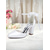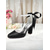 Dampumps med satinklack, kristallrosett och strassdetaljer, spetsiga högklackade skor för exklusiva fester och cocktailevenemang