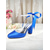 Blå damskor med blockklack – eleganta pumps i konstmocka för semiformella sammankomster, trädgårdsfester och kyrksöndagar