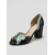Damskor i tvåfärgade gröna och vita blockklackar – spetsig tå med rosettdetalj, finskor i vintage-chic-stil från 1950-talet för arbete, fester och vardagskläder