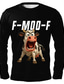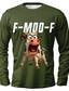 Herrars Roliga F-MOO-F Ko Ordspel Långärmad Grafisk T-shirt i Olivegrön